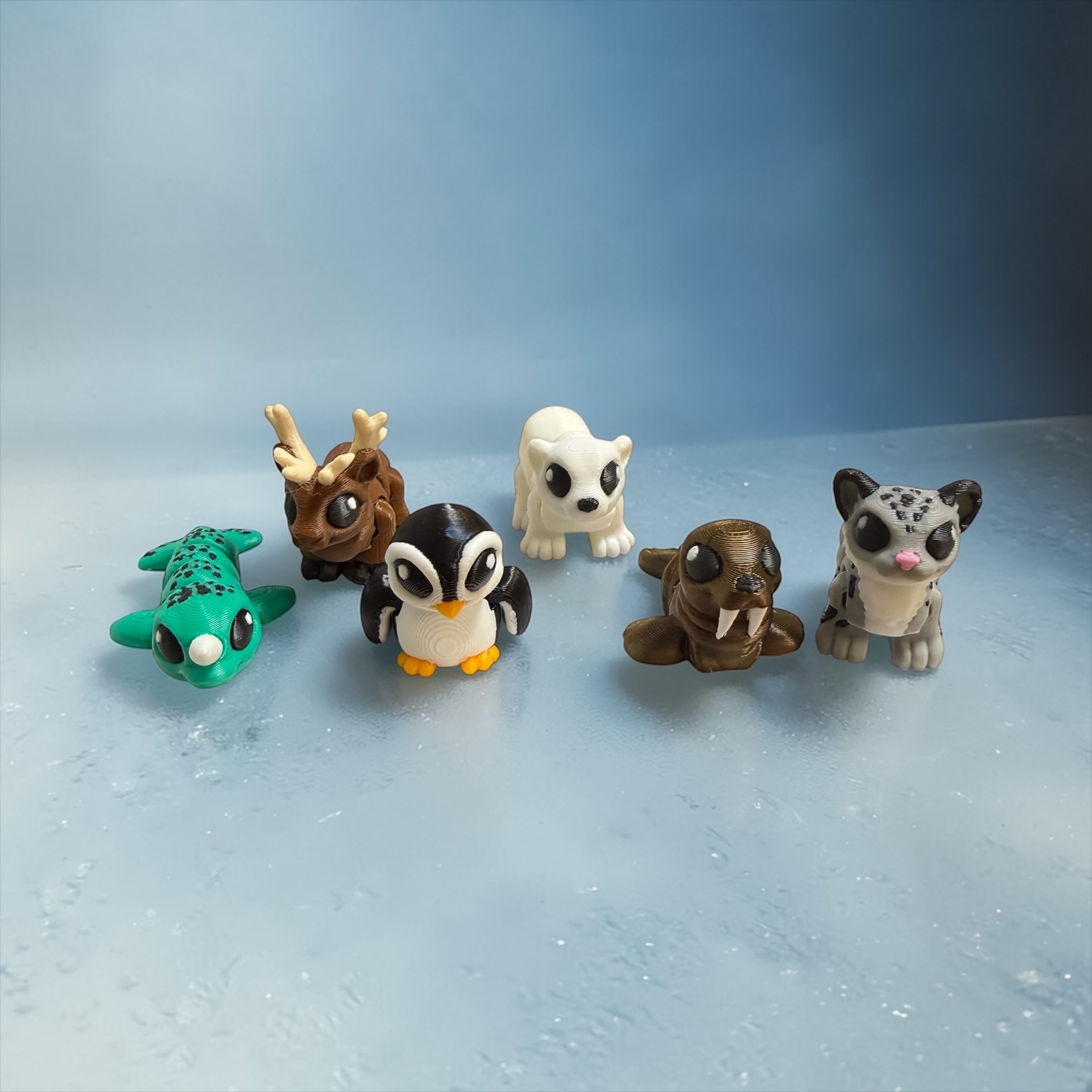Your set includes six miniature 3D‑printed arctic animals: