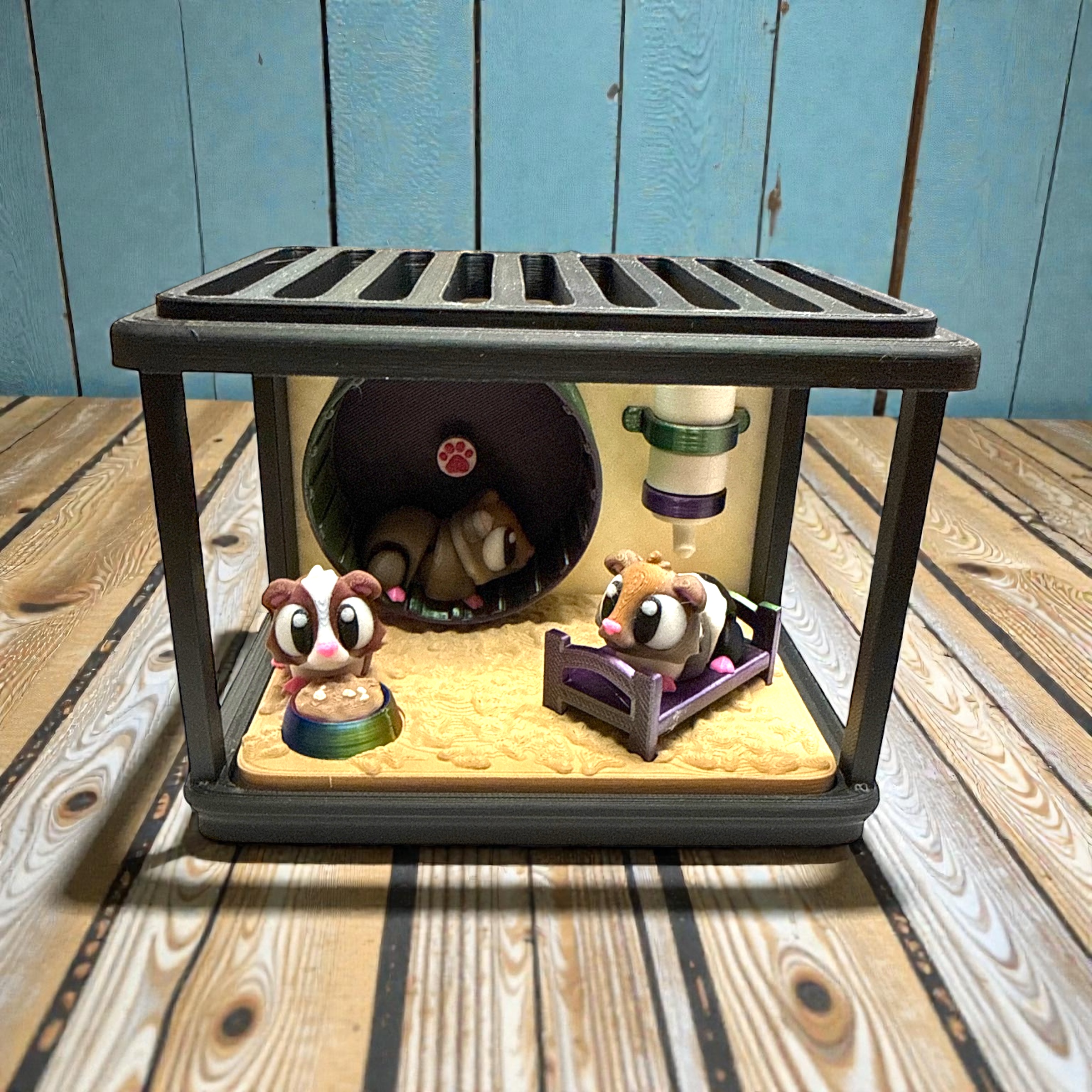 Each set comes with 3 loveable fidgety and wiggly little hamsters that are fun to play with and move around inside the cage. The cage is complete with a movable wheel, a bed, a water bottle, and a food bowl.
