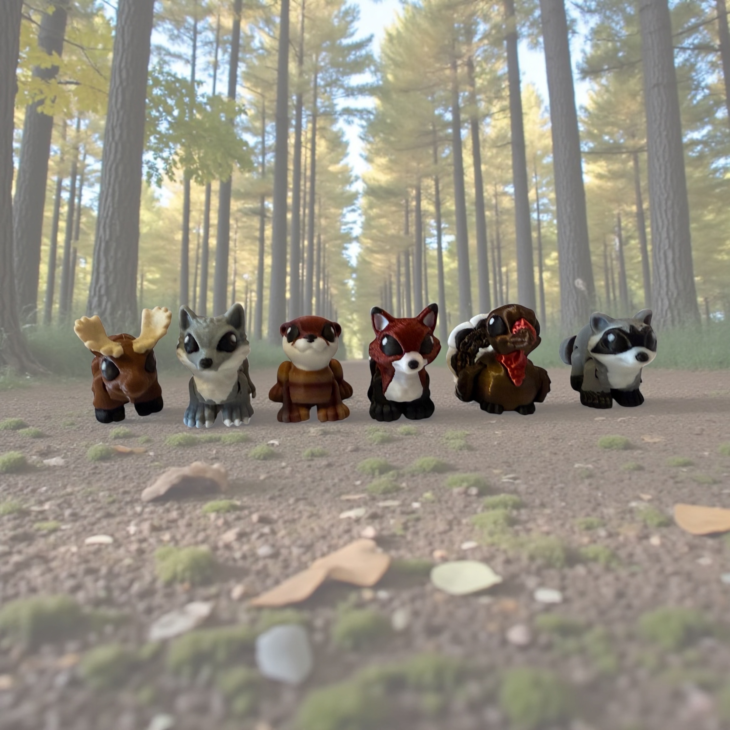 Home to 6 adorable woodland animals: Wolf. Raccoon. Moose. Turkey. Otter. Fox. Each miniature animal is lovingly designed with crisp details and smooth, kid‑friendly edges, making them perfect for imaginative play, sensory bins, shelf décor, or gifting. The acorn opens to reveal the full set inside, turning unboxing into a moment of pure woodland wonder.